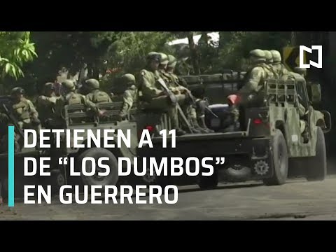 Fuerzas estatales de Guerrero detuvieron a 11 presuntos integrantes de ‘Los Dumbos’, se les incautó armas largas y droga. Suscríbete aquí: http://bit.ly/2aXfDay Síguenos en: Facebook: http://bit.ly/2aEpOvE Twitter: http://bit.ly/2apvcm4 Medium: http://bit.ly/2ay21wz Google+: http://bit.ly/2b6T1Al