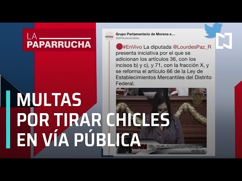 Diputada propone reformar la Ley de Residuos Sólidos de la CDMX para evitar que se arrojen chicles en la vía pública y sancionar a quienes lo hagan con una multa de hasta 16 mil 898 pesos NOTICIEROS TELEVISA Suscríbete aquí: http://bit.ly/2aXfDay Síguenos también en: Facebook: http://bit.ly/2faLJ2A Twitter: http://bit.ly/2fyP1cY Instagram: http://bit.ly/2fUXzPR Medium: http://bit.ly/2faPjtw Google+: http://bit.ly/2b6T1Al FORO Suscríbete aquí: http://bit.ly/2aXfDay Síguenos en: Facebook: http://bit.ly/2aEpOvE Twitter: http://bit.ly/2apvcm4 Medium: http://bit.ly/2ay21wz Google+: http://bit.ly/2b6T1Al