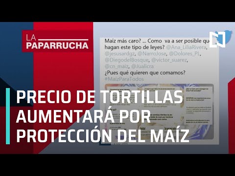 El presunto aumento en el precio de las tortillas de hasta cuatro veces por la aprobación de la Ley Federal para el Fomento y Protección del Maíz Nativo, es la paparrucha del día NOTICIEROS TELEVISA Suscríbete aquí: http://bit.ly/2aXfDay Síguenos también en: Facebook: http://bit.ly/2faLJ2A Twitter: http://bit.ly/2fyP1cY Instagram: http://bit.ly/2fUXzPR Medium: http://bit.ly/2faPjtw Google+: http://bit.ly/2b6T1Al FORO Suscríbete aquí: http://bit.ly/2aXfDay Síguenos en: Facebook: http://bit.ly/2aEpOvE Twitter: http://bit.ly/2apvcm4 Medium: http://bit.ly/2ay21wz Google+: http://bit.ly/2b6T1Al