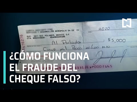 Autoridades de la Ciudad de México informaron cómo funciona el fraude del cheque falso Suscríbete aquí: http://bit.ly/2aXfDay Síguenos en: Facebook: http://bit.ly/2aEpOvE Twitter: http://bit.ly/2apvcm4 Medium: http://bit.ly/2ay21wz Google+: http://bit.ly/2b6T1Al
