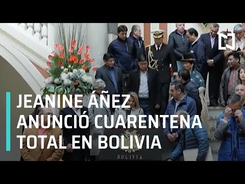 Jeanine Áñez, presidenta de Bolivia, anunció que a partir de las 00:00 horas del domingo entrará en vigor la cuarentena total en el país y estará vigente por 14 días. Suscríbete aquí: http://bit.ly/2aXfDay Síguenos en: Facebook: http://bit.ly/2aEpOvE Twitter: http://bit.ly/2apvcm4 Medium: http://bit.ly/2ay21wz Google+: http://bit.ly/2b6T1Al