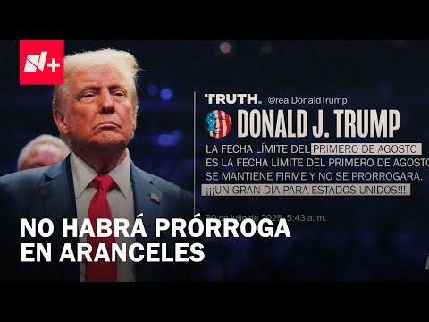 El presidente Trump escribió en su cuenta de Truth social que la fecha límite que dio "se mantiene firme y no se extenderá" para la imposición de nuevos aranceles a varios países del mundo. #NMÁS Suscríbete aquí: https://www.youtube.com/c/nmas Síguenos en WhatsApp: https://whatsapp.com/channel/0029Va3HRKF6mYPDarLE3C1w https://whatsapp.com/channel/0029Va6iWbA9RZAaopBolH0T Síguenos también en: Facebook: https://www.facebook.com/nmas.com.mx/ Twitter: https://twitter.com/nmas Instagram: https://www.instagram.com/n.mas/ TikTok: https://www.tiktok.com/@n.mas